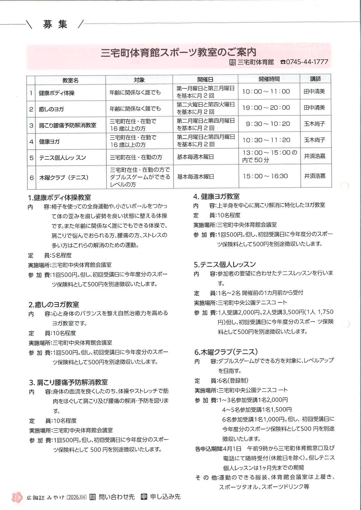 今年度もスポーツ教室を開きます。